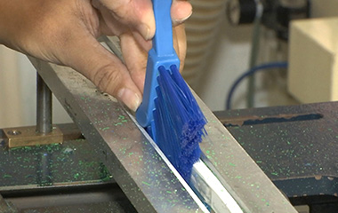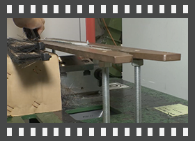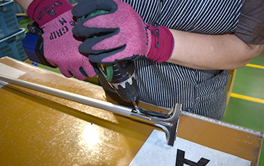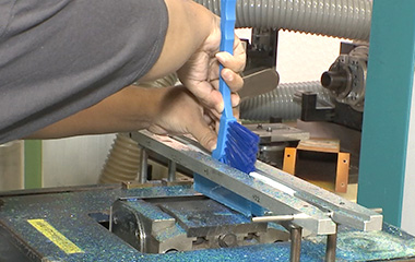 主にカーブ部分を特徴に持つ製品の毛刈りを行っており、自動の機械ではできないような工程となっています。