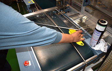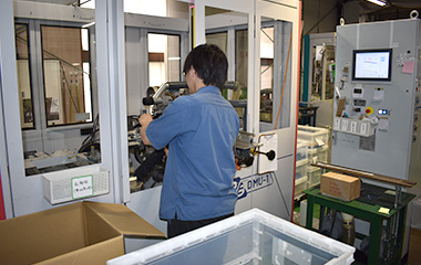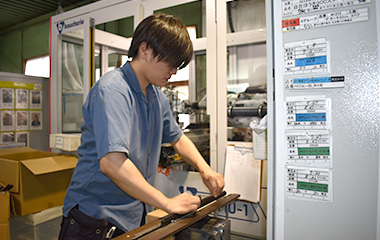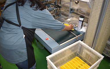 半自動で操作するため、作業者が常に付いてチェックしながら生産を行います。